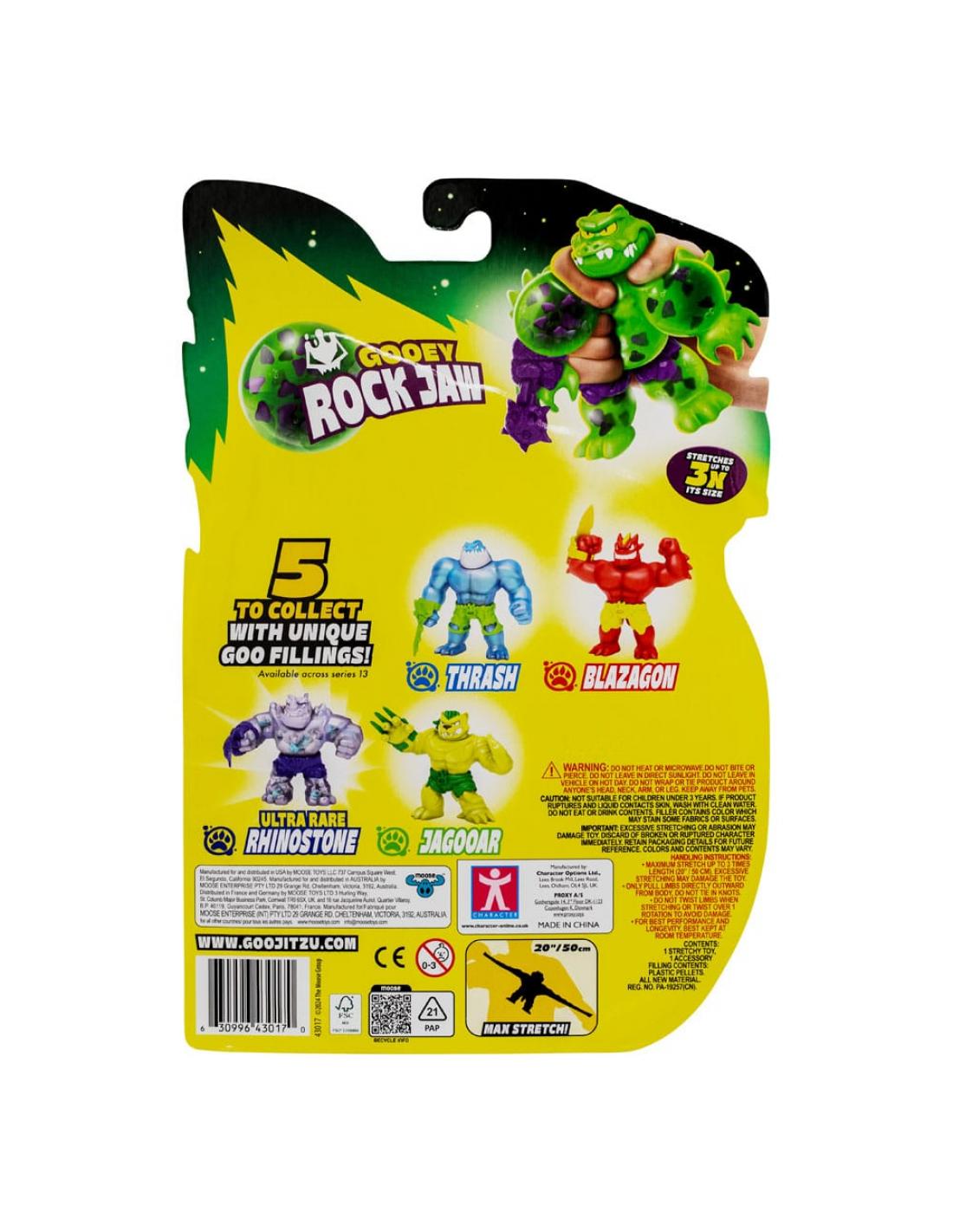La colección Meteor Madness aporta un nuevo nivel de emoción al universo Goo Jit Zu, con su mezcla única de texturas elásticas y blandas. La figura Rock Jaw es una de las últimas incorporaciones a esta línea, con un diseño genial que seguramente capturará tu imaginación.