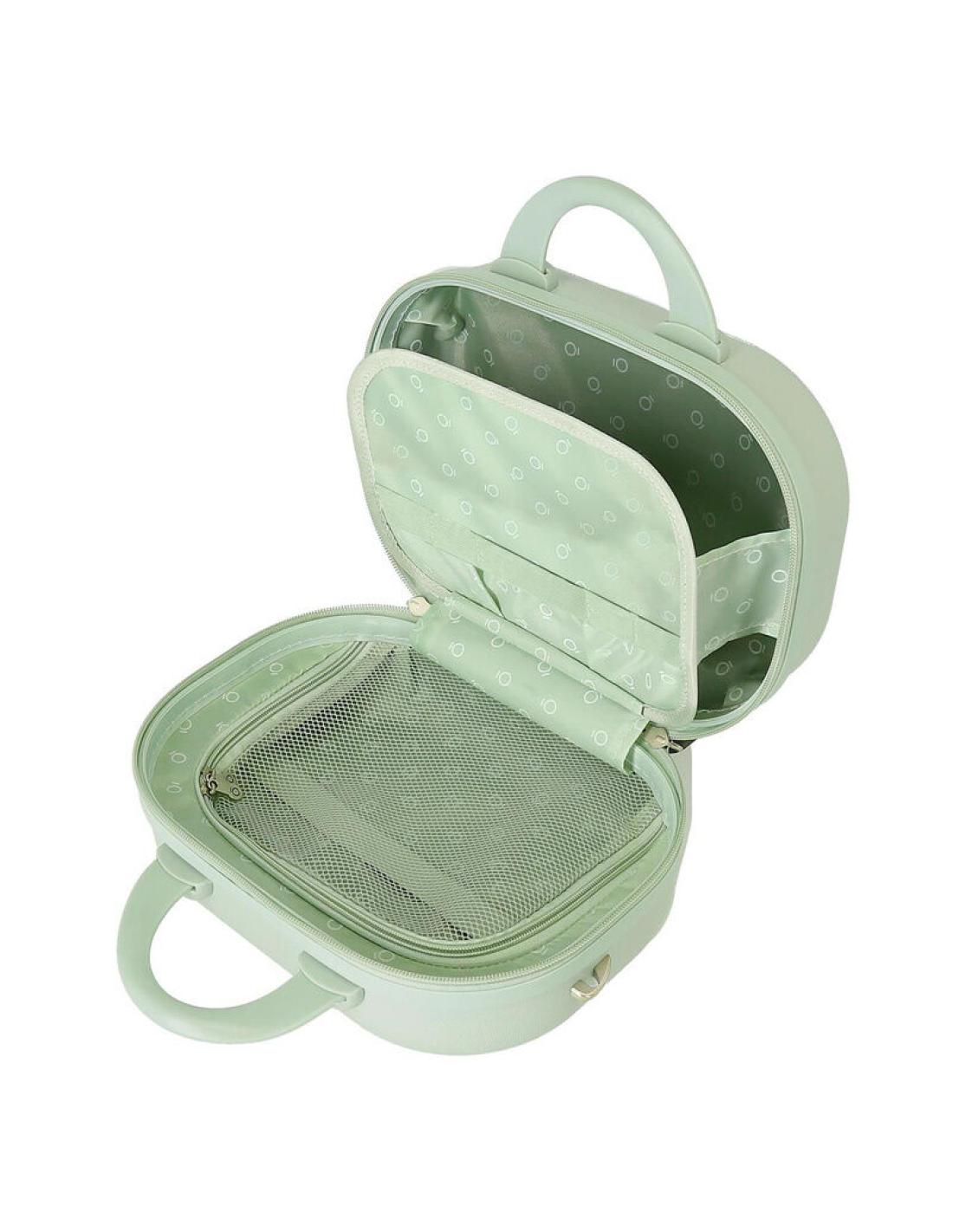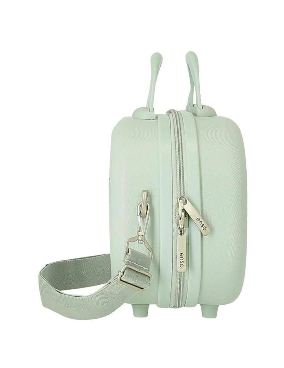 Neceser rigido de material ABS, con correa adaptable y banda elastica para adaptarlo a la maleta trolley.