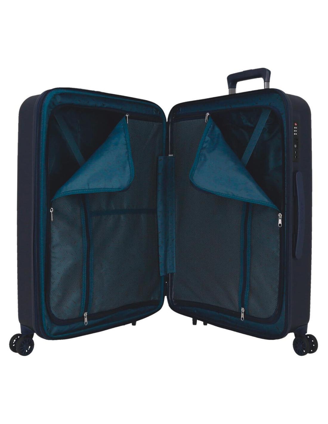 Medidas: 55cm y 65cm de alto. Fabricadas en ABS con cierre de combinacion TSA, 4 ruedas dobles multidireccionales, sistema expandible e interior con organizador.
